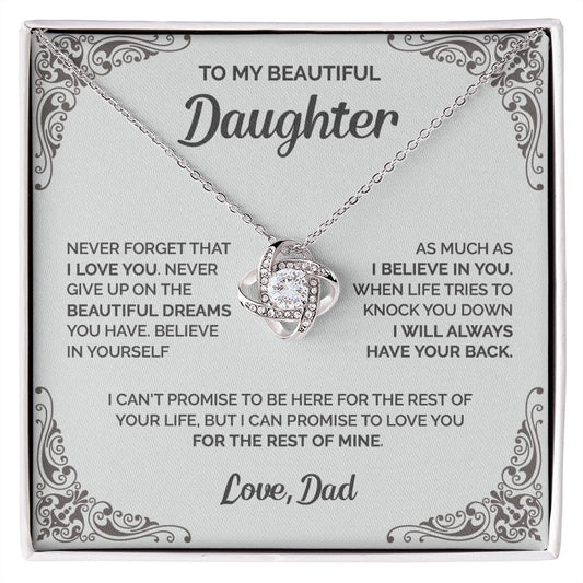 Daughter - Never give up on the beautiful dreams you have - 0013d Love Knot Necklace