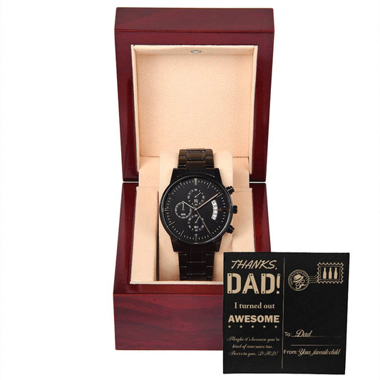 Fur Dad-Unconditional Love-Black Chronograph Watch with Mahogany Box